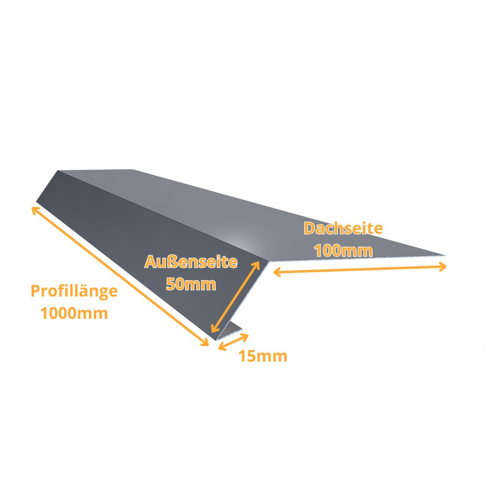 Mit einer Länge von 1,00m und wahlweise in RAL7016 Anthrazit oder Alu blank erhältlich, lässt es sich flexibel einsetzen. Die 0,8mm Materialstärke sorgt für Stabilität bei gleichzeitig einfacher Montage – perfekt für Carports, Garagen und Gartenhäuser.