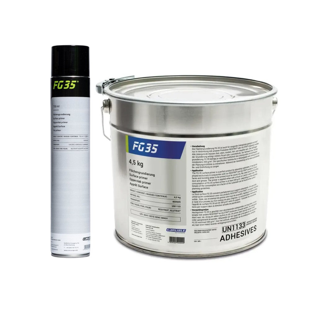 FG 35 ist eine hochwertige, lösemittelhaltige Grundierung, entwickelt auf Basis von Synthesekautschuk und Harzen. Sie wurde speziell für die Anwendung mit selbstklebenden Resitrix-Dichtungsbahnen sowie den selbstklebenden Aluminium-Dampfsperrbahnen Alutrix 600 und Alutrix FR konzipiert und bietet hervorragende Haftung auf einer Vielzahl von Untergründen.