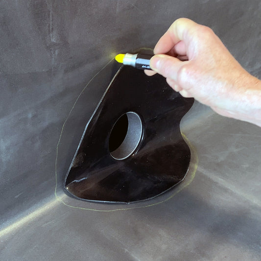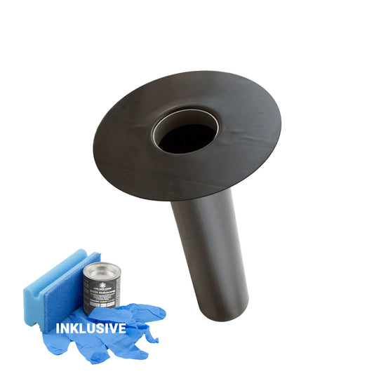 Wählen Sie aus passenden Sonderteile aus. Einsatz oberhalb der Abdichtung. Der Aluminium-Flansch der Durchführung wird nachträglich mittels dem 46cm Breiten Form- & Nahtabdeckband überklebt.