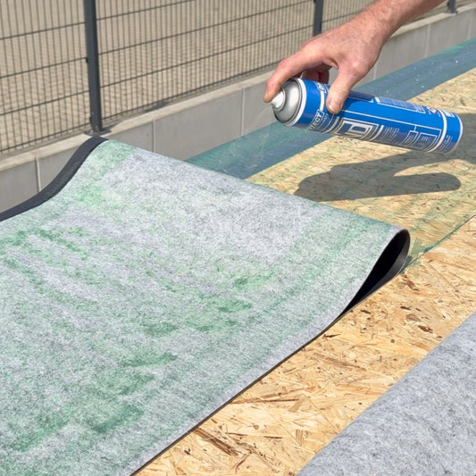 Spraybond Kontaktkleber: Verklebung im Kontaktklebeverfahren: ca. 5m2 Reichweite per Sprühdose. Verwendung überwiegend für Hochzüge und Befestigungen im Randbereich.